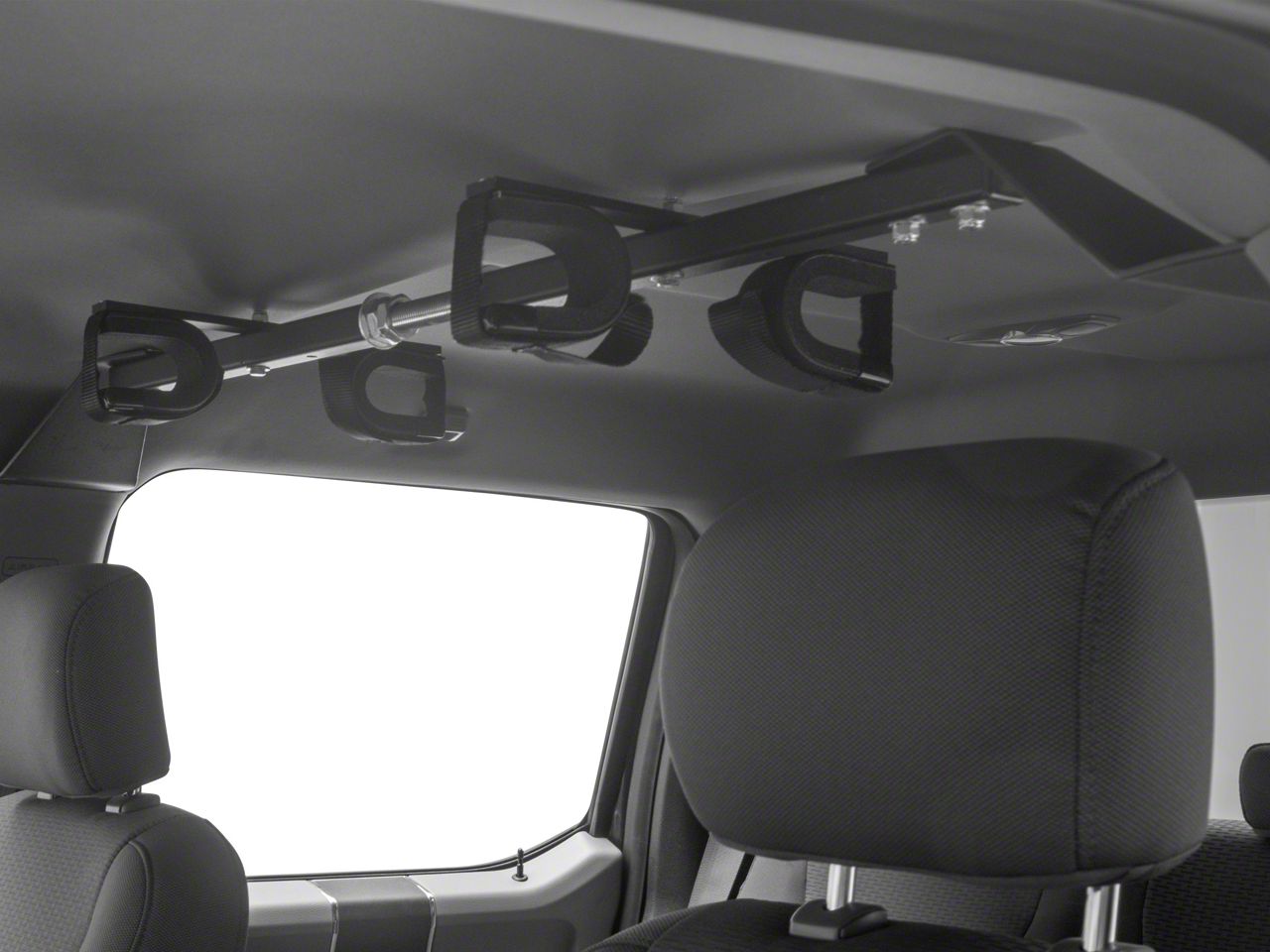 Storage Solution for Guns. For a more efficient gun storage solution, equip your truck with this Great Day Center-Lok Overhead Gun Rack. This gun rack easily converts your truck’s headliner into a gun storage area without affecting your vehicle’s headroom. What’s more, it secures your long guns with its opposing force mounting system so thieves won't get ahold of your weapons.