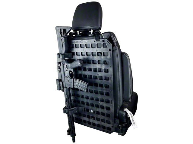 Application. This Grey Man Tactical Vehicle Rifle Rack MOLLE Panel fits any back seat with standard straps.