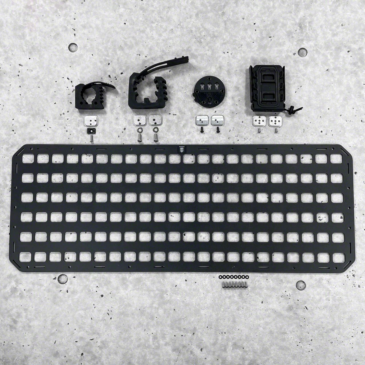 #501 features an easy installation by mounting the custom Rigid MOLLE Panel with the Pelican Case Screws into the mounting points on your lid. For lids without mounting points, install with the 3M Dual Lock Fastener Kit. Attach the G-Code Holsters Soft Shell Scorpion Mag Carrier, G-Code RTI Holster Integration Kit, and the Rifle Rack - Rubber Clamps onto the RMP using the included screws and Backer Plates for a secure and flush mount.
