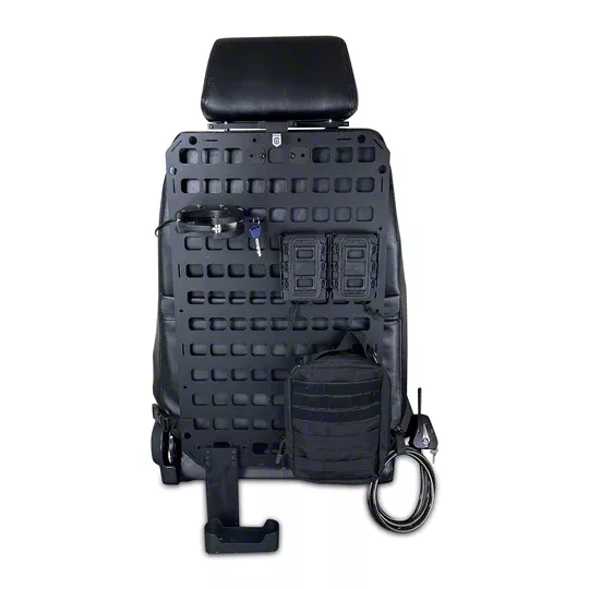 Efficient Firearm Storage. The Grey Man Tactical RMPX Vehicle Locking Rifle Rack MOLLE Panel with Standard Buttstock Cup Kit, SC-6 Mount and Large Utility Pouch provides efficient storage for your firearms. This product combines quick access and security, making it a functional solution for transporting long guns and preventing unauthorized use or theft of your firearms.