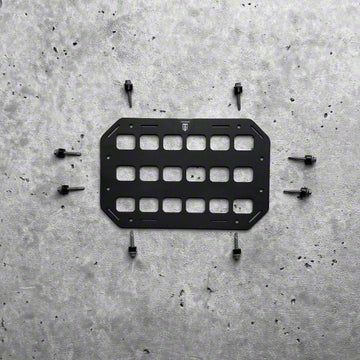 Organizational Innovation. The Grey Man Tactical RMP (Rigid MOLLE Panel) introduces a revolutionary way to organize and secure your gear. Its matte black finish not only adds a sleek, professional look but also offers durability for rugged use. Measuring 10.75 by 7 inches, this console/door/dash model provides a versatile mounting option, ensuring a universal fit across various platforms. Included with the panel are six self-drilling screws and 3M Dual Lock adhesive backed nylon spacers, along with a Velcro hook and loop based adhesive backing, making installation straightforward and customizable to your needs.
