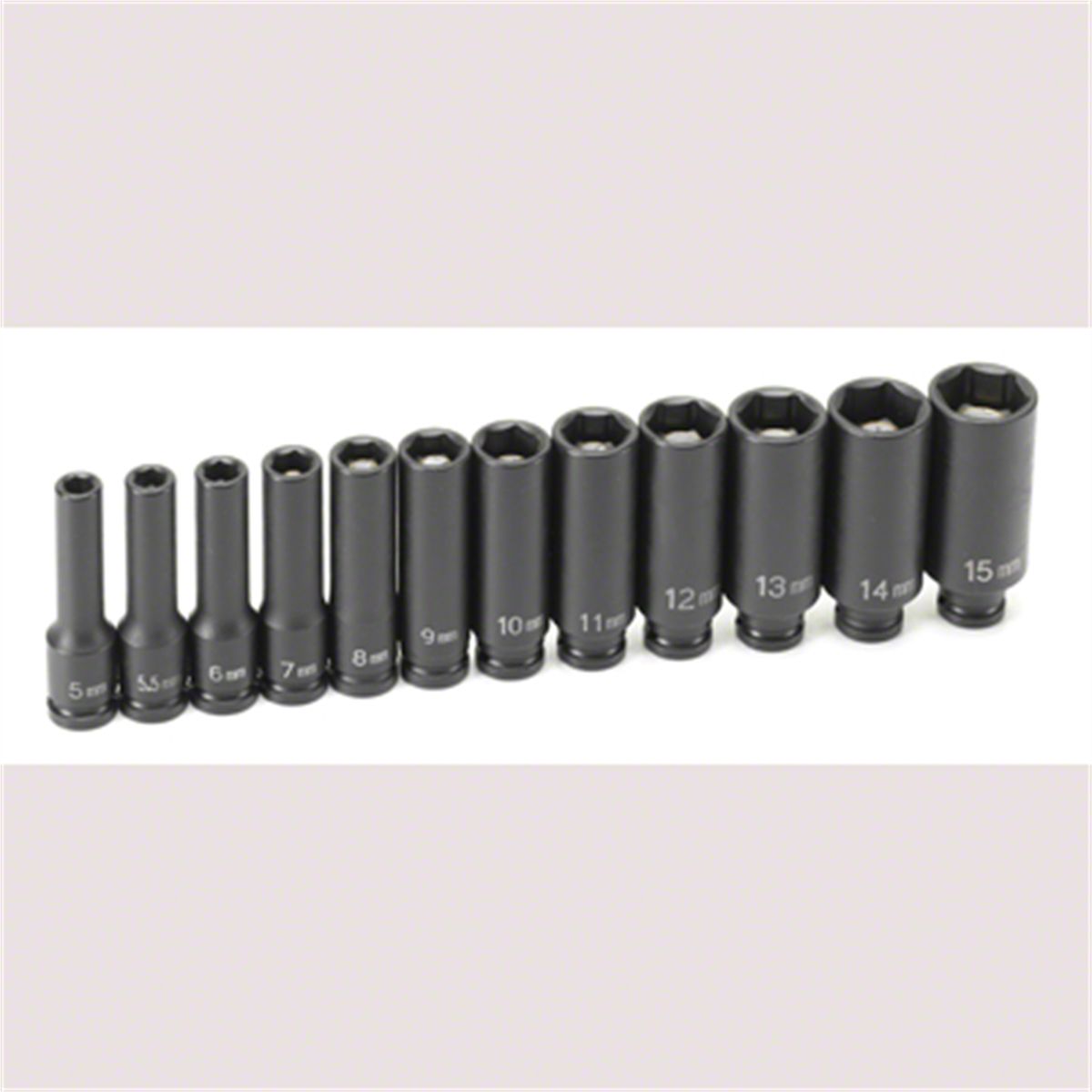 Grey Pneumatic 1/4-Inch Drive Deep Length Magnetic Metric Impact Socket Set; 6-Point; 12-Piece