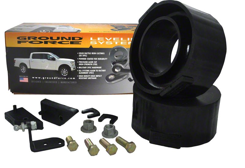 More Powerful Off-Road Performance. Simply leveling your truck can do great wonders for its off-road performance. If you want to boost your truck’s off-roading capabilities, equip it with this Ground Force 2-Inch Front Leveling Kit. With this kit, your vehicle will be able to have an additional 2-inch front lift. The higher ground clearance then makes your truck more capable of overcoming challenging trails without its chassis getting damaged.