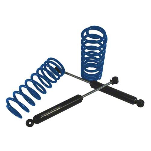 Equipped with Rear Coil Springs. To lower your truck’s rear, this kit comes equipped with rear coil springs. These components are designed to be shorter than your factory springs, allowing them to provide your truck with a 2-inch rear drop.