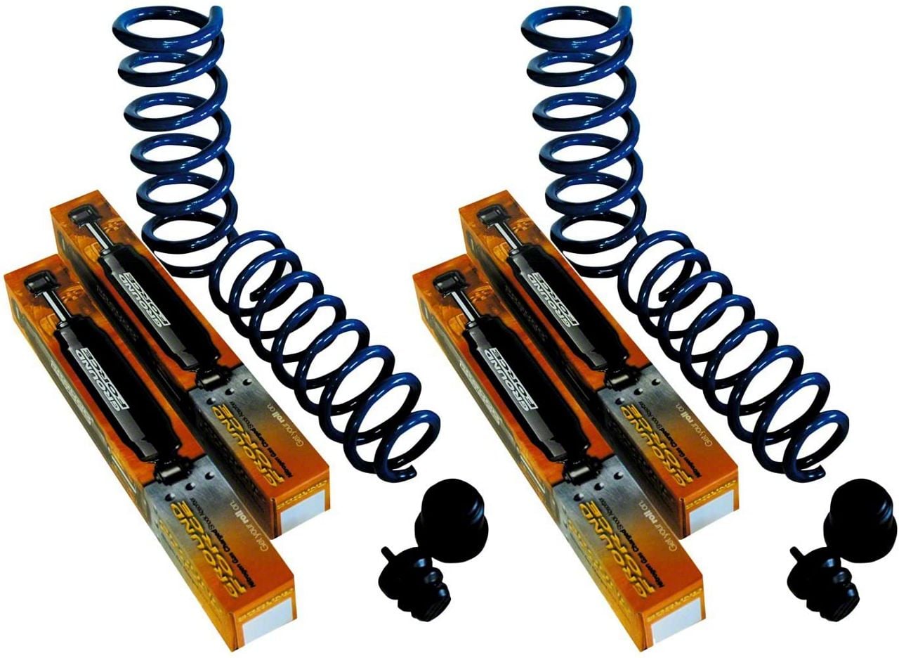 Includes Front and Rear Coil Springs. To lower your truck’s ride height, this kit includes front and rear coil springs. These coil springs are designed to be shorter, so your truck will be able to achieve the additional 2-inch front and 3-inch rear drop.