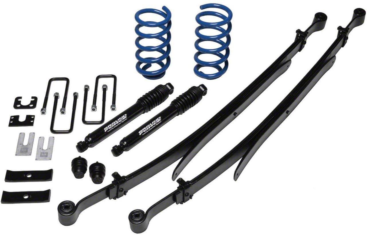 Comes with Front Coil Springs. The primary front lowering components of this kit are its front coil springs. These springs are relatively shorter, so they can let your truck have a 2.50-inch front drop. With their high-tensile strength, they can support your truck’s weight and load without over-compressing.