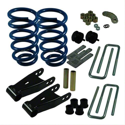Coil Springs. This 1-Inch Front / 3-Inch Rear Lowering Kit includes a pair of coil springs made from durable materials formed through a multi-level tempering procedure. These coils were engineered to provide reliable suspension support. Each high-performance spring was formed with high tensile strength and is protected by a durable powder coated finish for superior corrosion resistance.