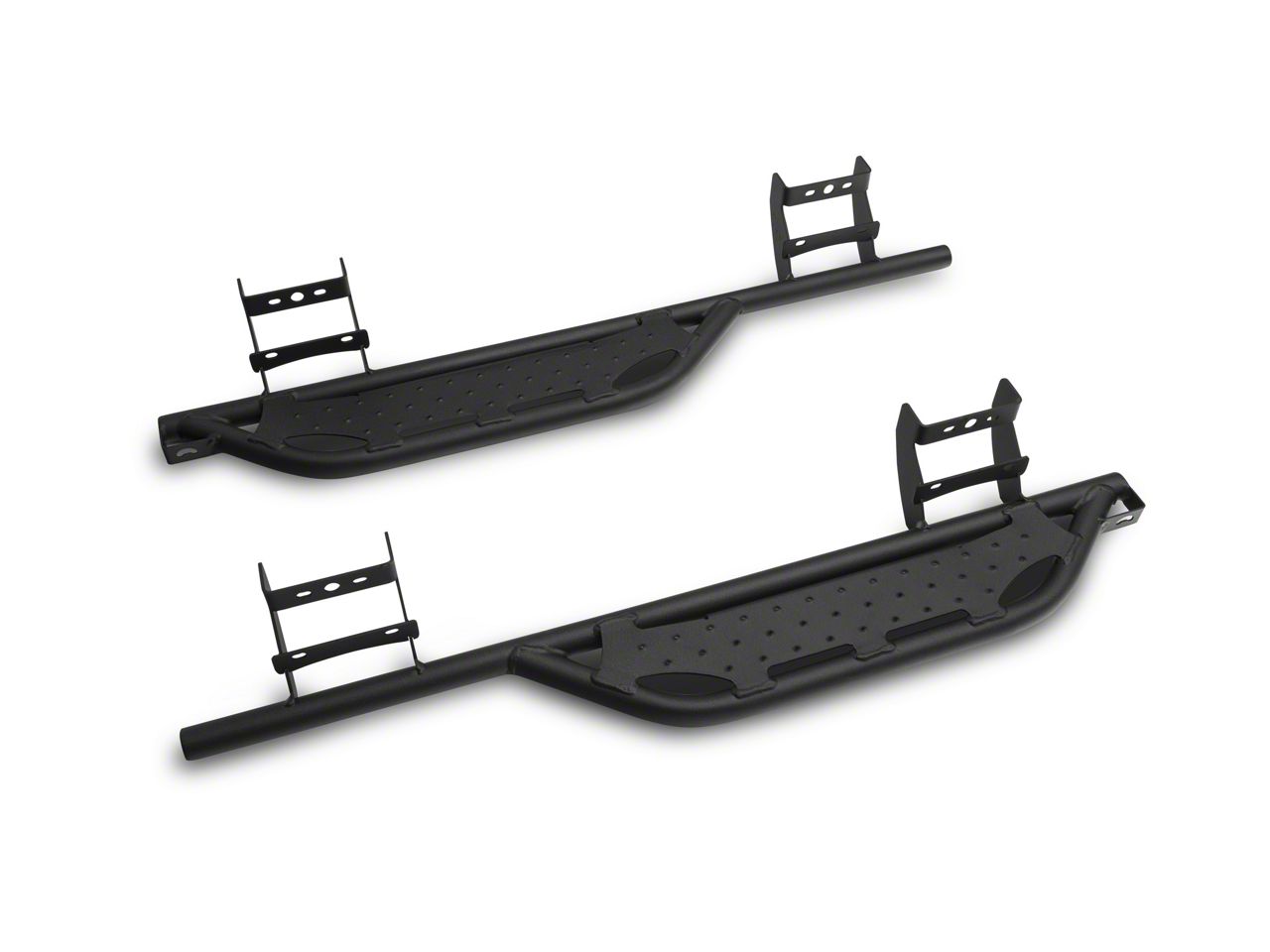 Sturdy Build Quality. Hammerhead Black Cab Length Running Boards are manufactured from high-grade .75-inch wide steel tubing with 0.120-inch thick walls. These boards are fully-welded, as well as machine-formed for a precise fit when installed. Each of the boards can take up to 300 pounds of weight, 600 pounds total. Lastly, these running boards are finished in a textured black powder coating for great looks and corrosion protection.