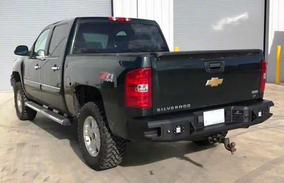 Bumper Replacement With an Aggressive Appeal. Make your Silverado 1500 stand out by swapping out stock parts with better ones. The rear bumper, for example, can look more aggressive when replaced with a proper aftermarket product. With that in mind, you should get the Hammerhead Rear Bumper With Flush Mount Reverse Light Cutouts. This bumper improves the look of your truck and gives it reliable protection for the rear end.