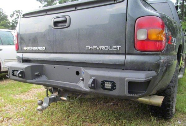 Superior Rear-End Protection. The Hammerhead Rear Bumper With Flush Mount Reverse Light Cutouts is the super-tough rear bumper that combines strength with useful standard features designed to maximize the use of your Silverado. This bumper comes with recessed side steps located at each corner making access to your truck bed much easier. This bumper also comes incorporated with shackle mounts that also double as the assembly’s mounting points. These shackle mounts extend all the way into the truck frame and are welded inside and out. This design makes these shackle mounts extremely strong which is important for any recovery procedures you may need to perform.