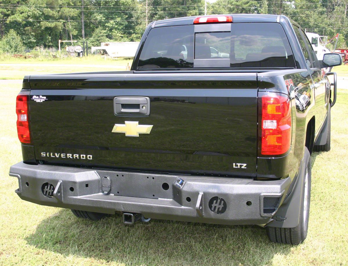 Application. The Hammerhead Rear Bumper With Round Reverse Light Cutouts fits all 2014 to 2018 Chevrolet Silverado 1500 models.