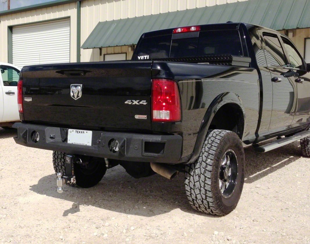 Application. The Hammerhead Rear Bumper With Round Reverse Light Cutouts fits all 2009 to 2018 Dodge RAM 1500 models without factory dual exhaust.