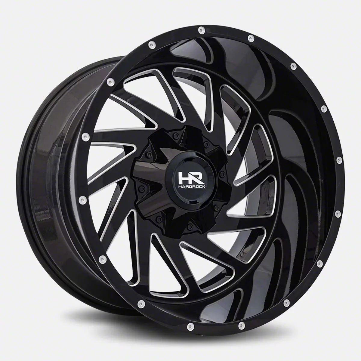 This 20x12 Hardrock Offroad Crusher Gloss Black Milled 8-Lug Wheel is completed in a high quality gloss black finish with steel milled accents for an aggressive appearance that will make others green with envy. A durable clear coat that withstands the rigors of driving.