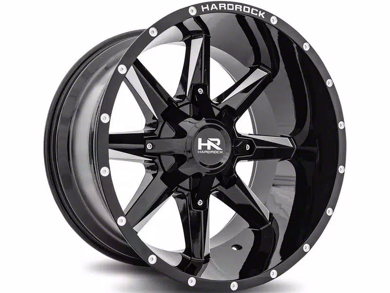 Hardrock Offroad Hardcore Gloss Black Milled 5-Lug Wheel; 20x10; -19mm Offset - Experience the sleek elegance of the Hardrock Offroad wheel. Its matte black finish adds a touch of sophistication to your vehicle, enhancing its overall appearance without compromising on durability. Perfect for a variety of vehicle styles, this wheel is a testament to the brand's commitment to quality and aesthetic excellence.