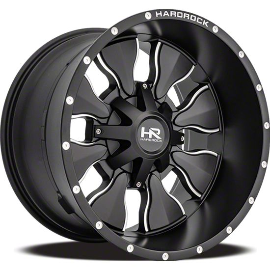 This 20x12 Hardrock Offroad Insane Satin Black Milled 5-Lug Wheel is completed in a high-quality satin black finish with steel milled accents to create an impressive appearance. There's a durable clear coat that protects against driving hazards.