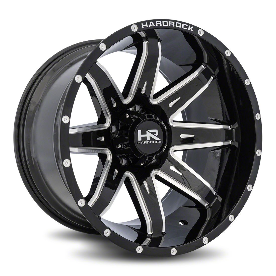 This 22x12 Hardrock Offroad Affliction Xposed Gloss Black Milled 6-Lug Wheel; 22x12; -44mm Offset is completed in a high-quality gloss black finish with steel milled accents that will be the envy of everyone. For added protection and looks, there is a clear coat designed to handle whatever the road, or beyond, throws at it.