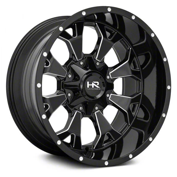 Application. This Hardrock Offroad Devastator Gloss Black Milled 6-Lug Wheel; 22x10; -25mm Offset with a backspace of 4.516 Inch, 114.7mm; and bolt pattern of 6 x 139.7mm (6 x 5.5-Inch), contributes to alignment, driving stability, and ensures a perfect fit with the vehicle model. Designed to fit the 2007-2013 Silverado 1500. Sold individually.