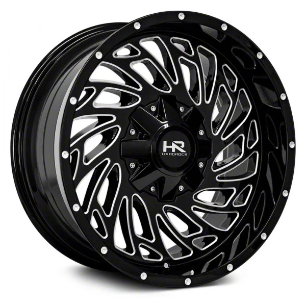 Hardrock Offroad Attack Gloss Black Milled 8-Lug Wheel; 20x12; -51mm Offset - Enhance your vehicle's style with the Hardrock Offroad wheel. This wheel's distinctive design and finish complement your vehicle's aesthetics, making a bold statement. It's crafted to accentuate the unique character of your car, emphasizing a premium and robust appeal.