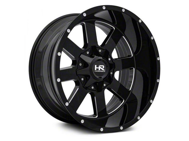 Hardrock Offroad Tank Gloss Black Milled 8-Lug Wheel; 20x12; -44mm Offset. The Hardrock Offroad Tank Gloss Black Milled 8-Lug Wheel offers a striking balance of style and refinement. Its unique design accentuates the vehicle's aesthetic, while the premium construction underscores its robust nature. This wheel is a perfect choice for those seeking both elegance and a strong visual statement.