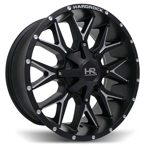 This 20x12 Hardrock Offroad Affliction Satin Black Milled 6-Lug Wheel is completed in a high-quality satin black finish with steel milled accents to create an impressive appearance. There's a durable clear coat that protects against driving hazards.