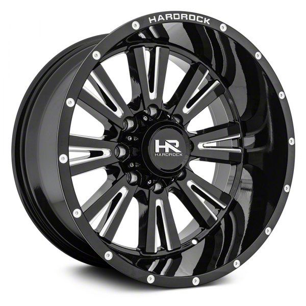 This 20x12 Hardrock Offroad Spine Xposed Gloss Black Milled 6-Lug Wheel is completed in a high-quality gloss black finish with steel milled accents that will be the envy of everyone. There's a durable clear coat that protects against driving hazards.
