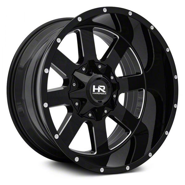 This 20x12 Hardrock Offroad Tank Gloss Black Milled 6-Lug Wheel is completed in a high-quality gloss black finish with steel milled accents that will create a striking appearance. There's a durable clear coat that protects against driving hazards.