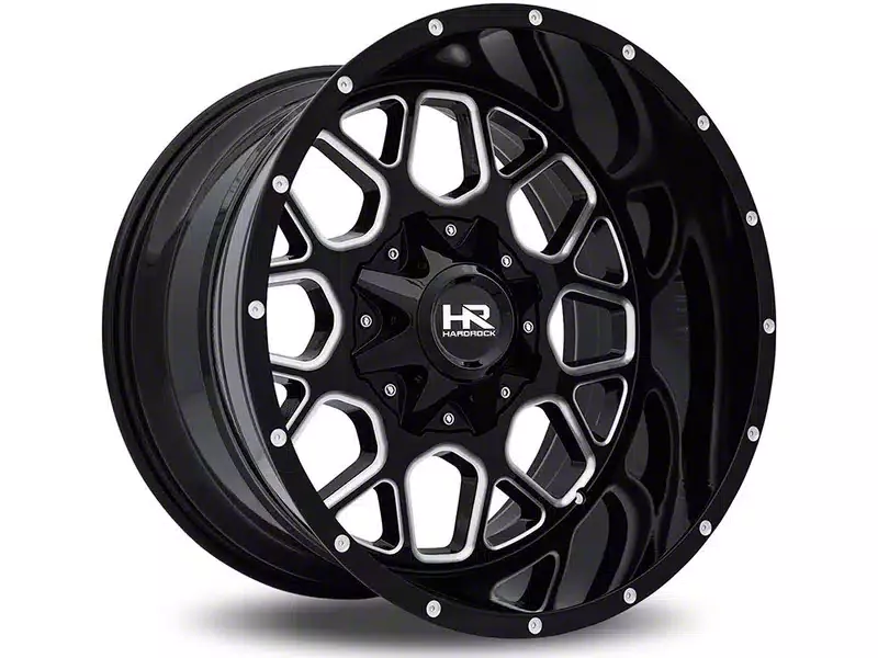 Hardrock Offroad Gunner Gloss Black Milled 6-Lug Wheel; 20x9; 0mm Offset. The Hardrock Offroad Gunner Gloss Black Milled 6-Lug Wheel offers a striking balance of style and refinement. Its unique design accentuates the vehicle's aesthetic, while the premium construction underscores its robust nature. This wheel is a perfect choice for those seeking both elegance and a strong visual statement.
