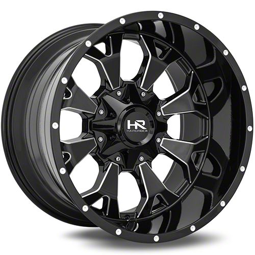 Hardrock Offroad Devastator Gloss Black Milled 6-Lug Wheel; 20x10; -19mm Offset. The Hardrock Offroad Devastator Gloss Black Milled 6-Lug Wheel offers a striking balance of style and refinement. Its unique design accentuates the vehicle's aesthetic, while the premium construction underscores its robust nature. This wheel is a perfect choice for those seeking both elegance and a strong visual statement.