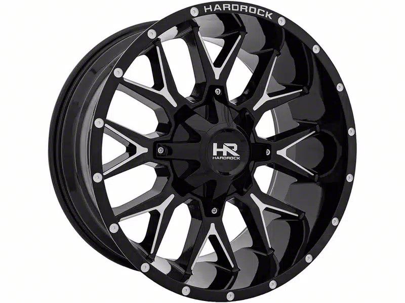 Hardrock Offroad H700 Affliction Gloss Black Milled 6-Lug Wheel; 20x9 is a representation of Hardrock Offroad's commitment to superior design and craftsmanship. The wheel showcases a unique aesthetic appeal, emphasizing its premium nature. Perfect for those looking to enhance their vehicle's appearance, this wheel complements various vehicle styles without overpowering them.