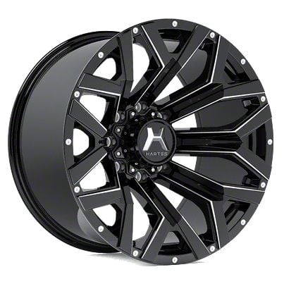 Hartes Metal Hawkish Gloss Black Milled 6-Lug Wheel; 20x10; -18mm Offset. Enhance your vehicle's look with the Hartes Metal Hawkish Gloss Black Milled 6-Lug Wheel. This premium wheel adds a touch of elegance and class to your vehicle, complementing its sophisticated aesthetic.