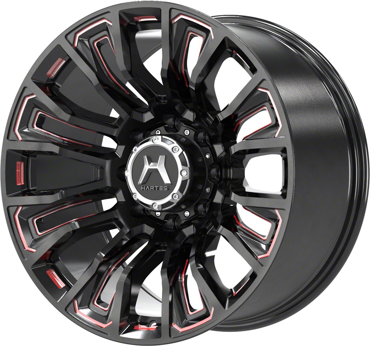 The 20x10 Hartes Metal Maverick Gloss Black Milled with Red Tint 8-Lug Wheel is completed in a gloss black finish with steel milled accents and red tint for an impressive appearance. For added protection and looks, there's a durable clear coat that withstands the hazards of everyday driving.
