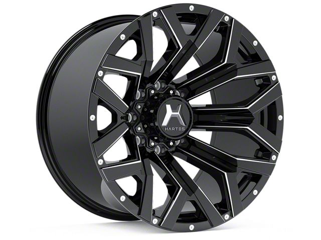 Hartes Metal Hawkish Gloss Black Milled 8-Lug Wheel; 20x10; -18mm Offset offers a striking balance of style and performance. Its unique design enhances the visual appeal of your vehicle, while its construction ensures compatibility with a range of styles. The wheel's premium finish highlights its superior quality and craftsmanship.