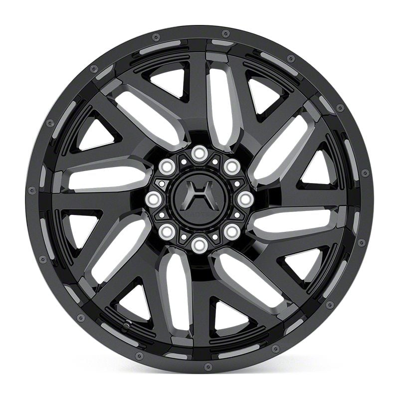 Hartes Metal Stealth Gloss Black Machined with Dark Tint 8-Lug Wheel; 20x10; -18mm Offset This Hartes Metal Stealth Gloss Black Machined with Dark Tint 8-Lug Wheel; 20x10; -18mm Offset brings a sleek and modern touch to your vehicle with its striking design. Its refined finish and bold styling make it an excellent choice for those looking to enhance their car’s visual appeal. Whether you're aiming for a sporty look or a more aggressive stance, this wheel stands out as a premium addition. Perfect for drivers who appreciate a stylish upgrade.