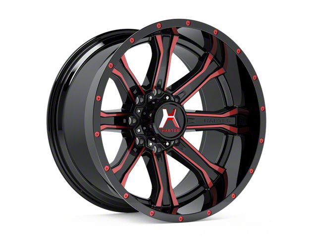 Hartes Metal Strike Gloss Black Milled with Red Tint 8-Lug Wheel; 22x10; -18mm Offset offers a striking balance of style and performance. Its unique design enhances the visual appeal of your vehicle, while its construction ensures compatibility with a range of styles. The wheel's premium finish highlights its superior quality and craftsmanship.