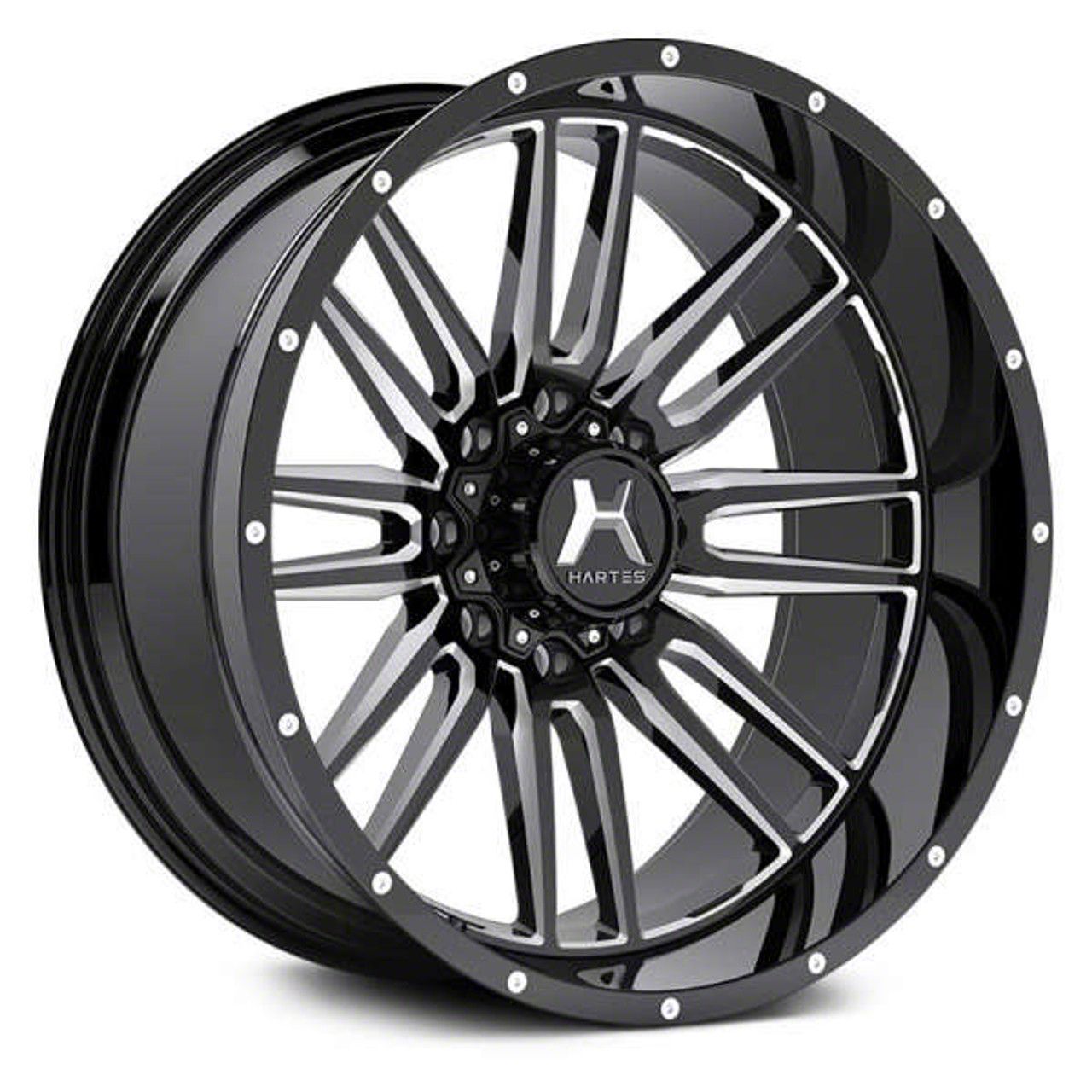 The 24x12 Hartes Metal Whipsaw Gloss Black Milled 8-Lug Wheel is completed in a high-quality gloss black finish with steel milled accents for an aggressive appearance. For added protection and good looks, there is a durable clear coat that withstands the rigors of everyday driving.