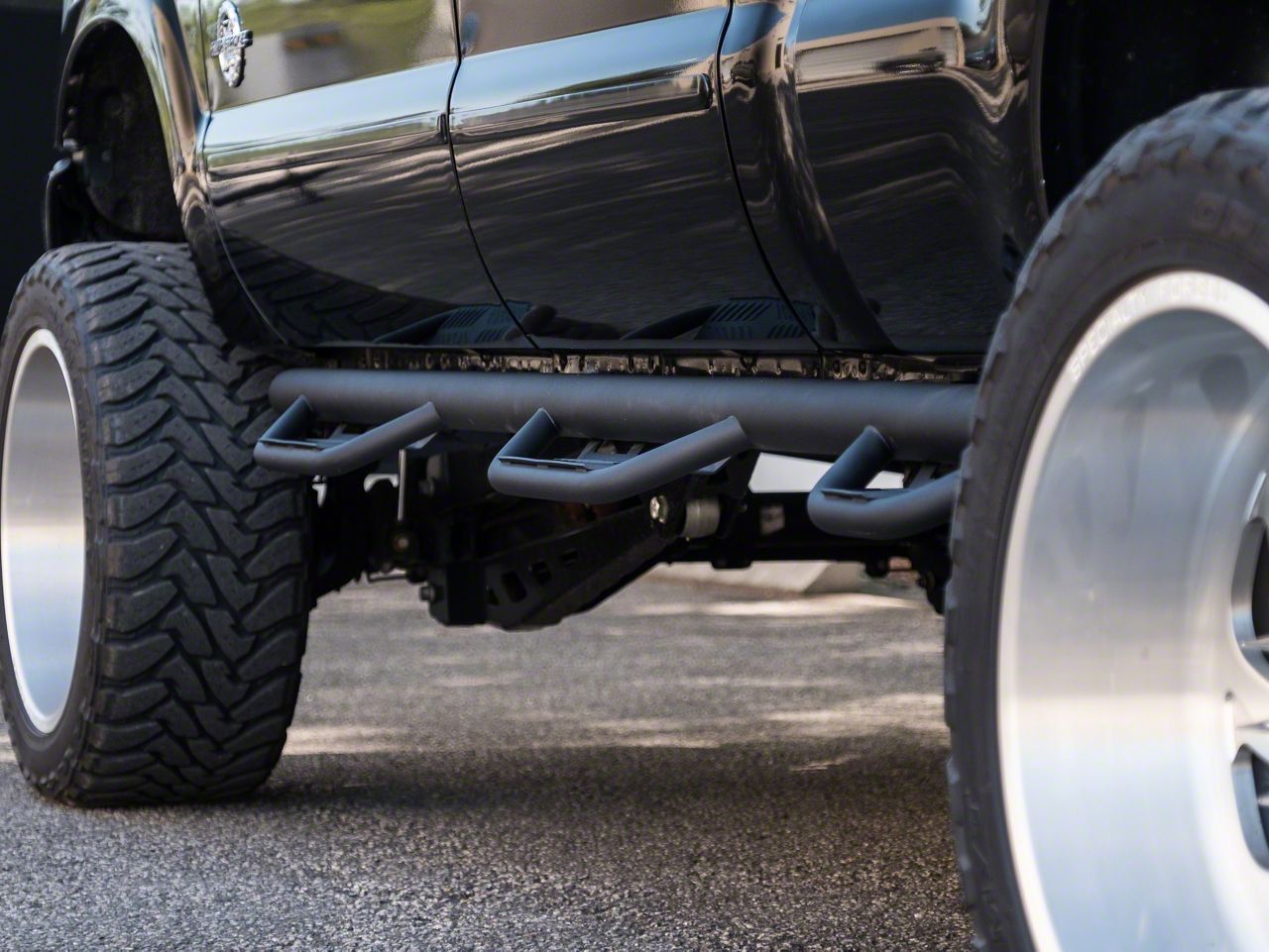 Easier Entry and Exit. These textured black Havoc Offroad HS3 Hoop Side Step Bars provide you easier entry and exit options for your Super Duty F-250 SuperCrew. Built strong, these side step bars provide some additional armor and look amazing with their black finish.