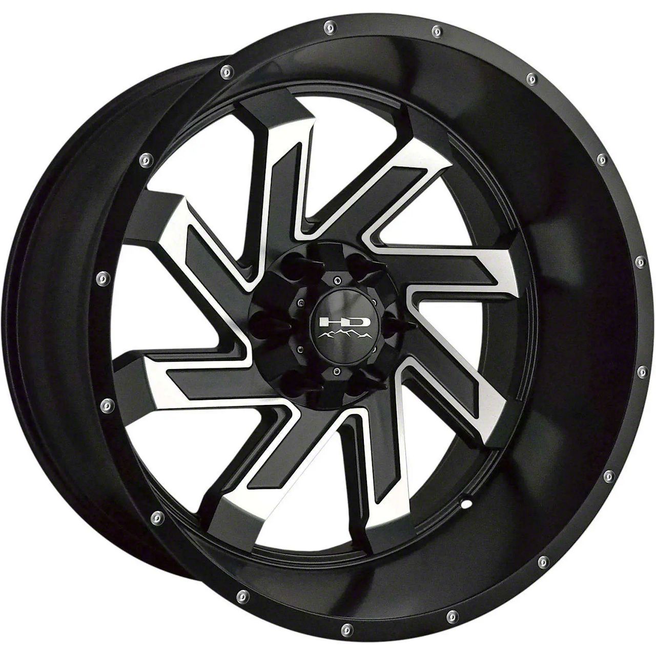 This 20x10 HD Off-Road Wheels SAW Satin Black Machined 6-Lug Wheel is completed in a high-quality satin black finish with machined accents to create an impressive appearance. There's a durable clear coat that protects against driving hazards.