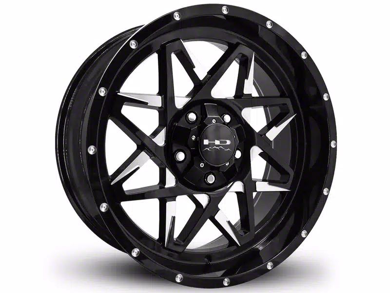 This 20x9 HD Off-Road Wheels Caliber Gloss Black Milled 6-Lug Wheel is completed in a gloss black finish with steel milled accents that will be the envy of everyone. There's a durable clear coat that protects against driving hazards.