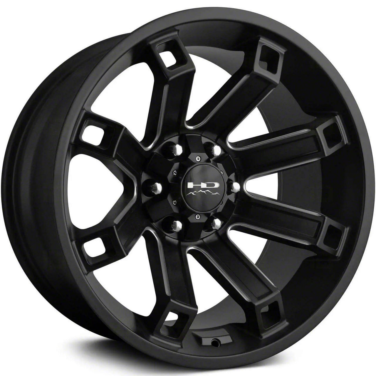 HD Off-Road Wheels Hollow Point Satin Black Milled 6-Lug Wheel; 20x10; -35mm Offset - This wheel's elegant design will certainly enhance your vehicle's aesthetic, complementing its luxury and performance. The unique styling of this wheel makes it an ideal choice for a standout quality of your ride, reflecting the premium quality associated with the HD Off-Road Wheels brand.