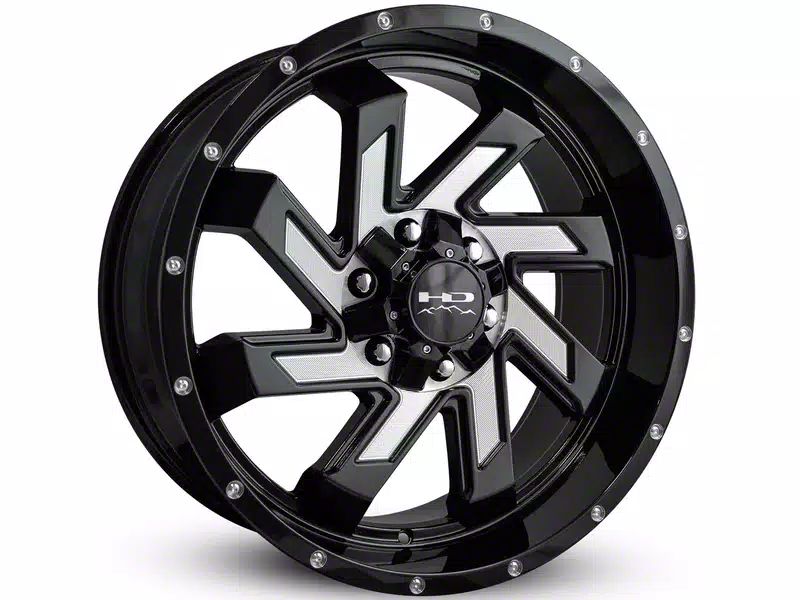 The 20x10 HD Off-Road Wheels SAW Gloss Black 8-Lug Wheel is completed in a high-quality gloss black finish, which looks great. Thanks to a durable clear coat, the finish also protects against the rigors of driving.