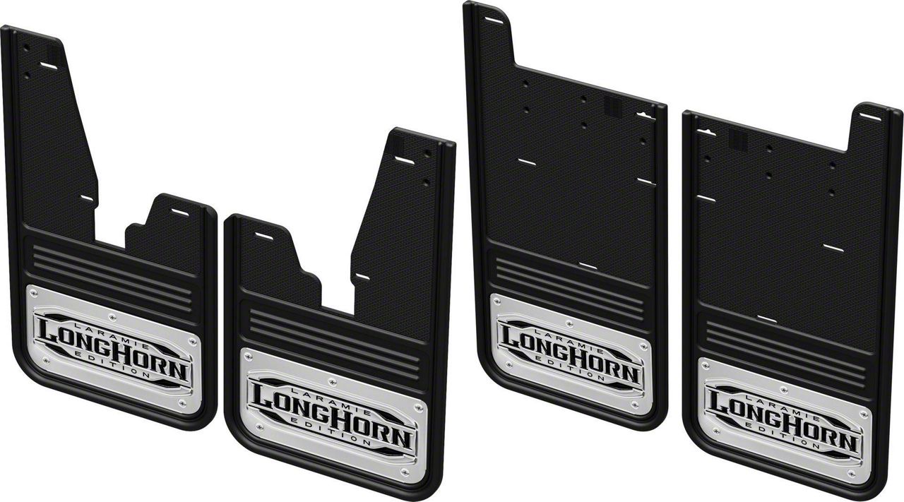 The Truck Hardware Gatorback series mud flaps are the industries highest quality heavy duty mud guards! The rugged design and quality finish of these mud flaps make the perfect compliment to your truck. Featuring a 1/2"" thick rubber flap with an embossed stainless steel plate, these mud flaps are sure to impress while they protect your investment. Officially licensed logos from MOPAR give your Dodge Ram Longhorn truck a custom look that is a step above the competition.