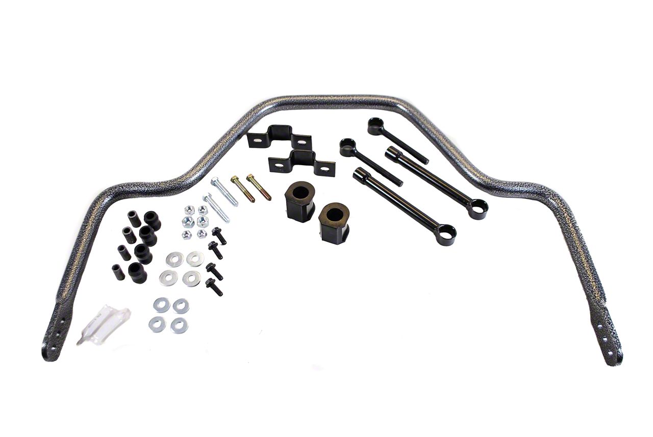 Hellwig Big Wig Sway Bar. The Hellwig Big Wig Sway Bar is a high-performance upgrade. This rear sway bar is crafted to significantly enhance vehicle handling and stability, particularly under load or during sharp turns. Its tubular design and large diameter increase its effectiveness in reducing body roll, thereby improving overall driving dynamics. The raw metal and matte black finish not only ensures durability but also provides a robust, aggressive look that complements the tough aesthetics of the vehicle.
