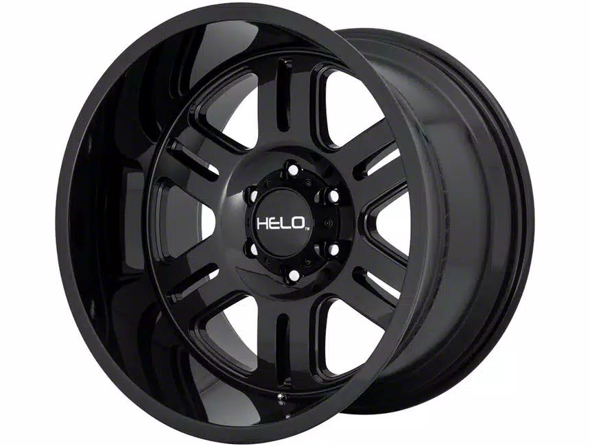 This 20x12 HELO HE916 Gloss Black 5-Lug Wheel is completed in a high-quality gloss black finish that stands out immediately. There's a durable clear coat that protects against the hazards of driving.