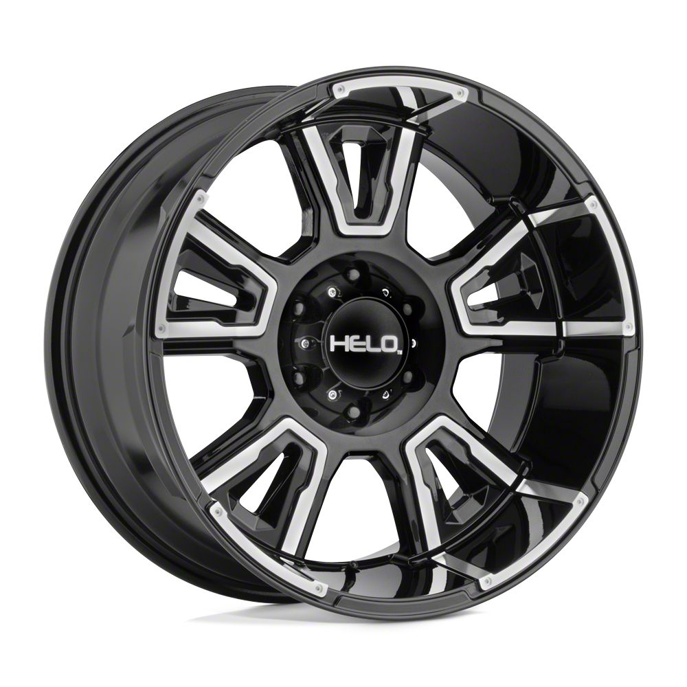 Application. This HELO HE914 Gloss Black Machined 8-Lug Wheel; 20x9; 0mm Offset, with a backspacing of 5 Inch, 127mm and a bolt pattern of 8 x 165.1mm (8 x 6.5-Inch), is designed to fit 2010-2018 models. Sold individually.