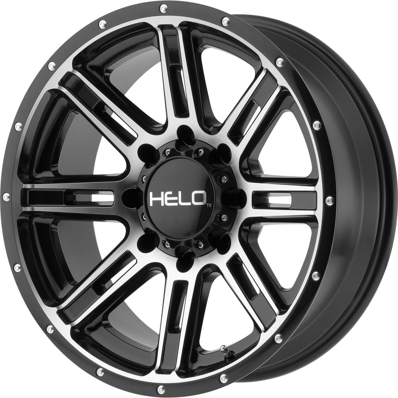 HELO HE900 Gloss Black Machined 8-Lug Wheel; 20x9; 18mm Offset - Elevate your vehicle's style with this wheel's striking design. Reflecting the HELO's commitment to quality, it promises to add a touch of elegance and a strong character to your ride. Perfect for those seeking to make an impression without saying a word.