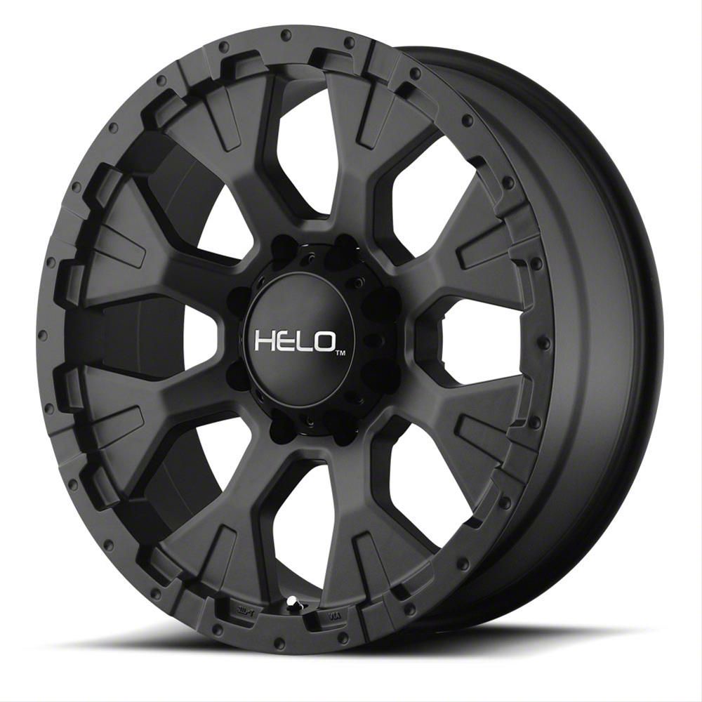The 20x9 HELO HE878 Satin Black 6-Lug Wheelis coated with a specially formulated satin black finish. It protects the entire wheel against corrosion, while adding a stunning appeal to your ride’s appearance.