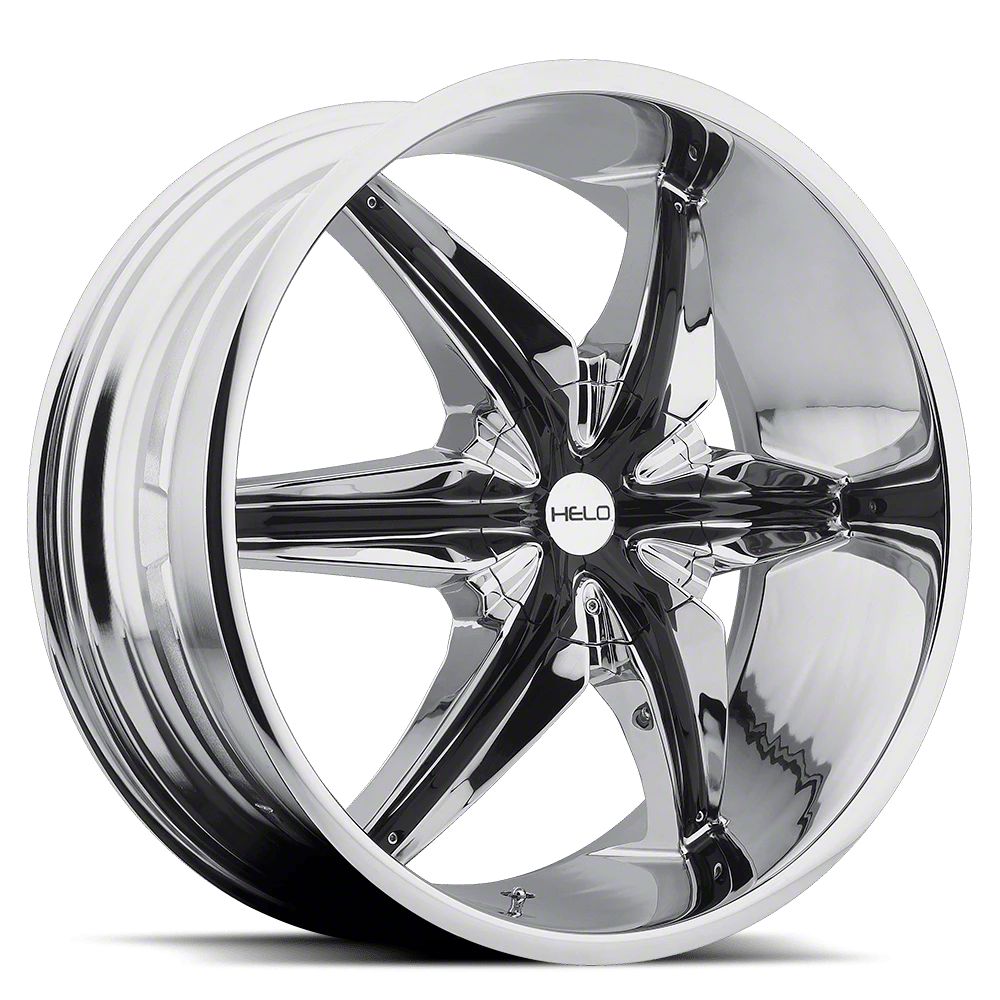 HELO HE866 Chrome with Gloss Black Accents 5-Lug Wheel; 22x9.5; 10mm Offset The HELO HE866 Chrome with Gloss Black Accents 5-Lug Wheel combines a sleek, sophisticated design with premium construction that enhances the visual appeal and complements a wide range of vehicle styles. This wheel is perfect for those seeking to make a bold statement while maintaining elegance and robustness.