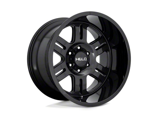 HELO HE916 Gloss Black 8-Lug Wheel; 20x10; -18mm Offset The HELO HE916 Gloss Black 8-Lug Wheel combines a sleek, sophisticated design with premium construction that enhances the visual appeal and complements a wide range of vehicle styles. This wheel is perfect for those seeking to make a bold statement while maintaining elegance and robustness.