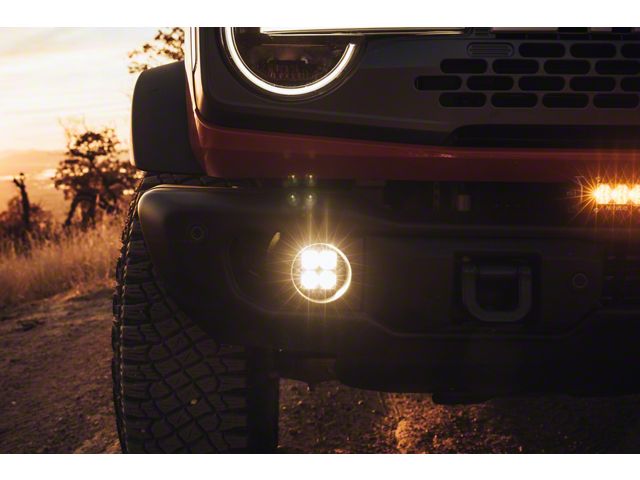 Description. The Ford Bronco LED Fog Light Kit (2021+) is the best LED fog light kit on the market for your Ford SUV. The Bronco fog light kit increases your visibility two-fold from OEM fog light kits. We’ve custom built the fog light kit housing in a sleek, simple stainless steel powder coated bracket. The install is easy with the plug and play wire harness and you can choose your selection of amber vs. clear lens options. This fog light kit is compatible with Ford Bronco ('21+) Capable Bumper.