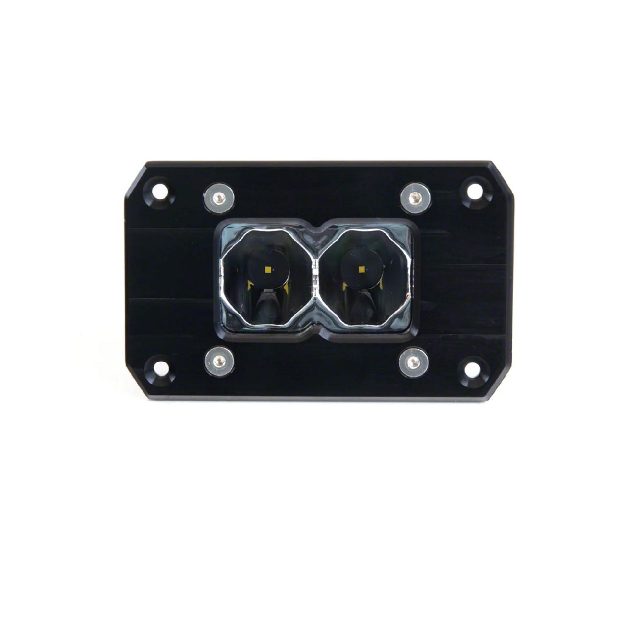 Description. The Heretic BA-2 Flush Mount LED Light Pod is our staple flush bezel mount light pod used for various applications from an optimal chase light to a ditch light, A-pillar light and beyond. These high performance clear LED pod lights are designed and manufactured in the USA, housed in CNC machined aircraft-grade aluminum, and outfitted with best-in-class circuit boards that allow temperature control and long-lasting light. The BA-2 Flush Mount LED Light Pod is recommended on the front or rear bumpers of trucks, jeeps, SUVs, and UTVS. They can also be used on the sides and rear of roof racks as a chase light. These light pods are best for clear night conditions